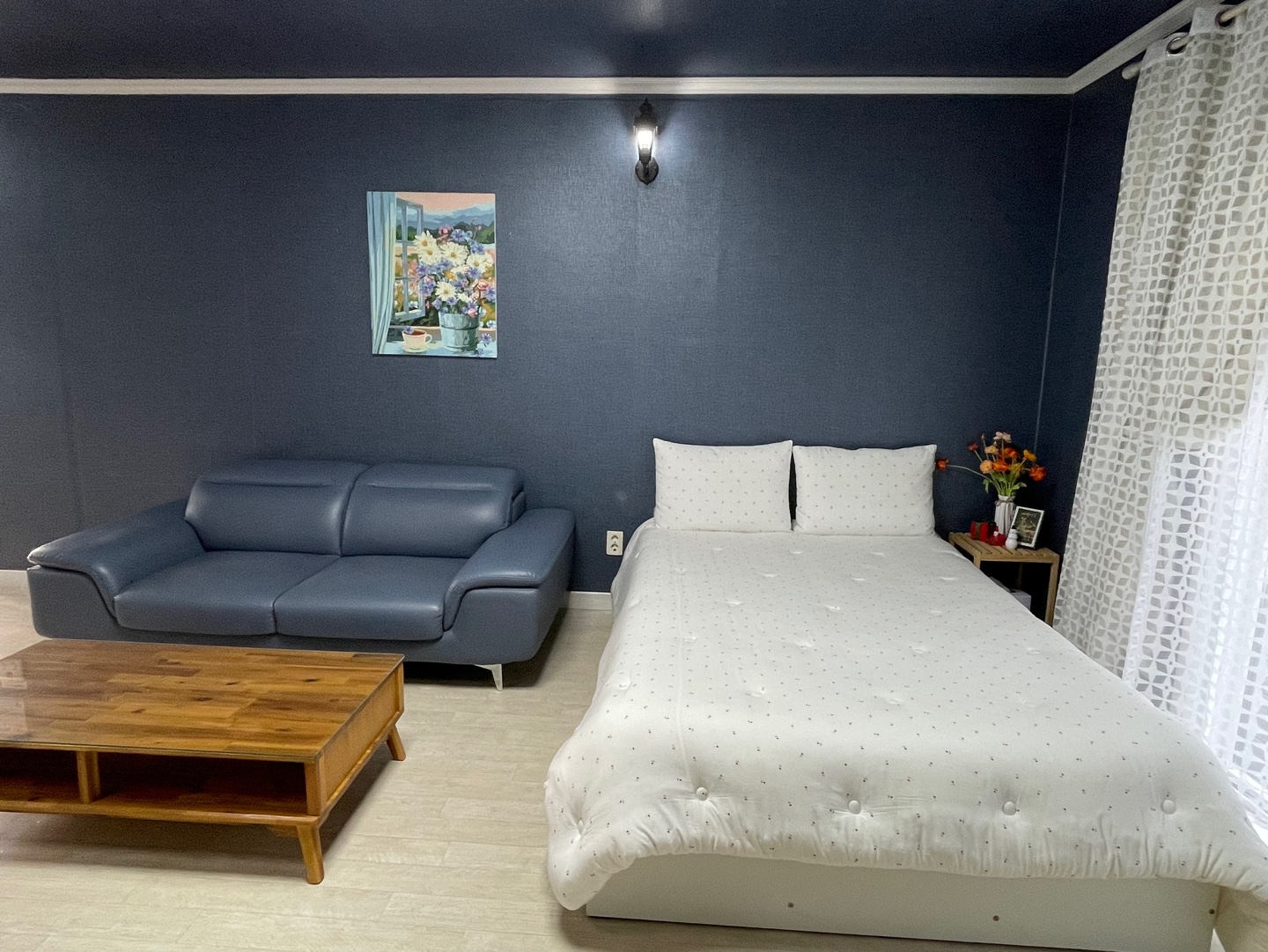 1층 침대, 소파,화장실1, 주방1, TV,냉장고, 식기류, 옷장, 테이블로 구성되었습니다.
